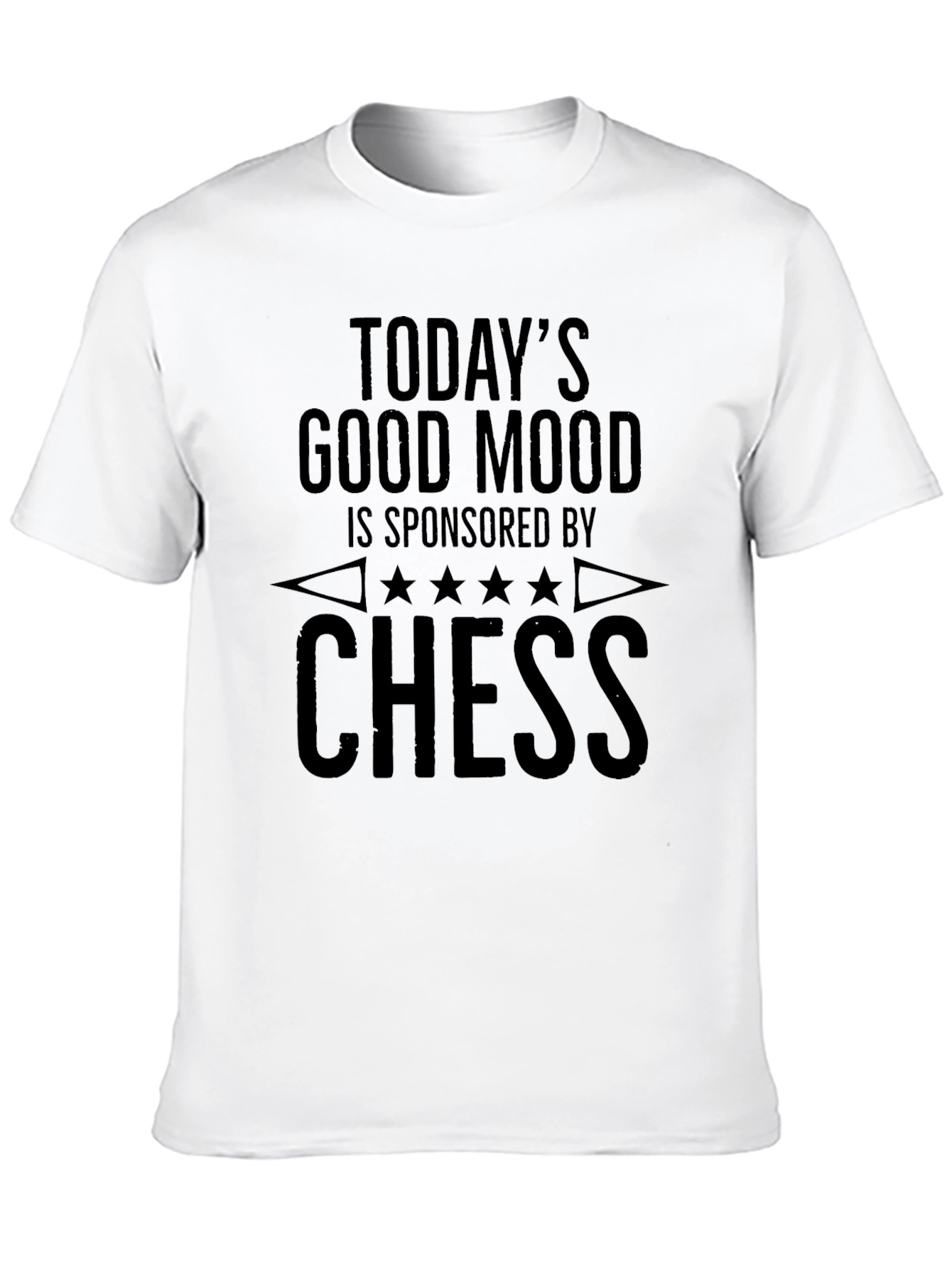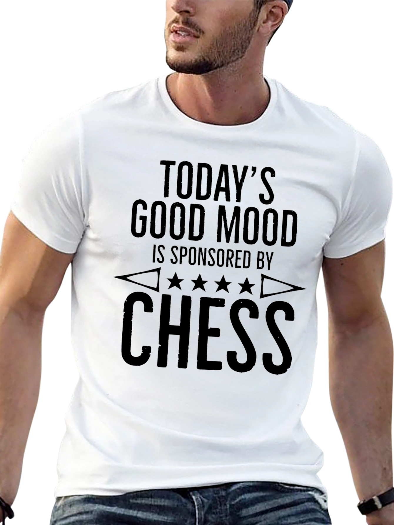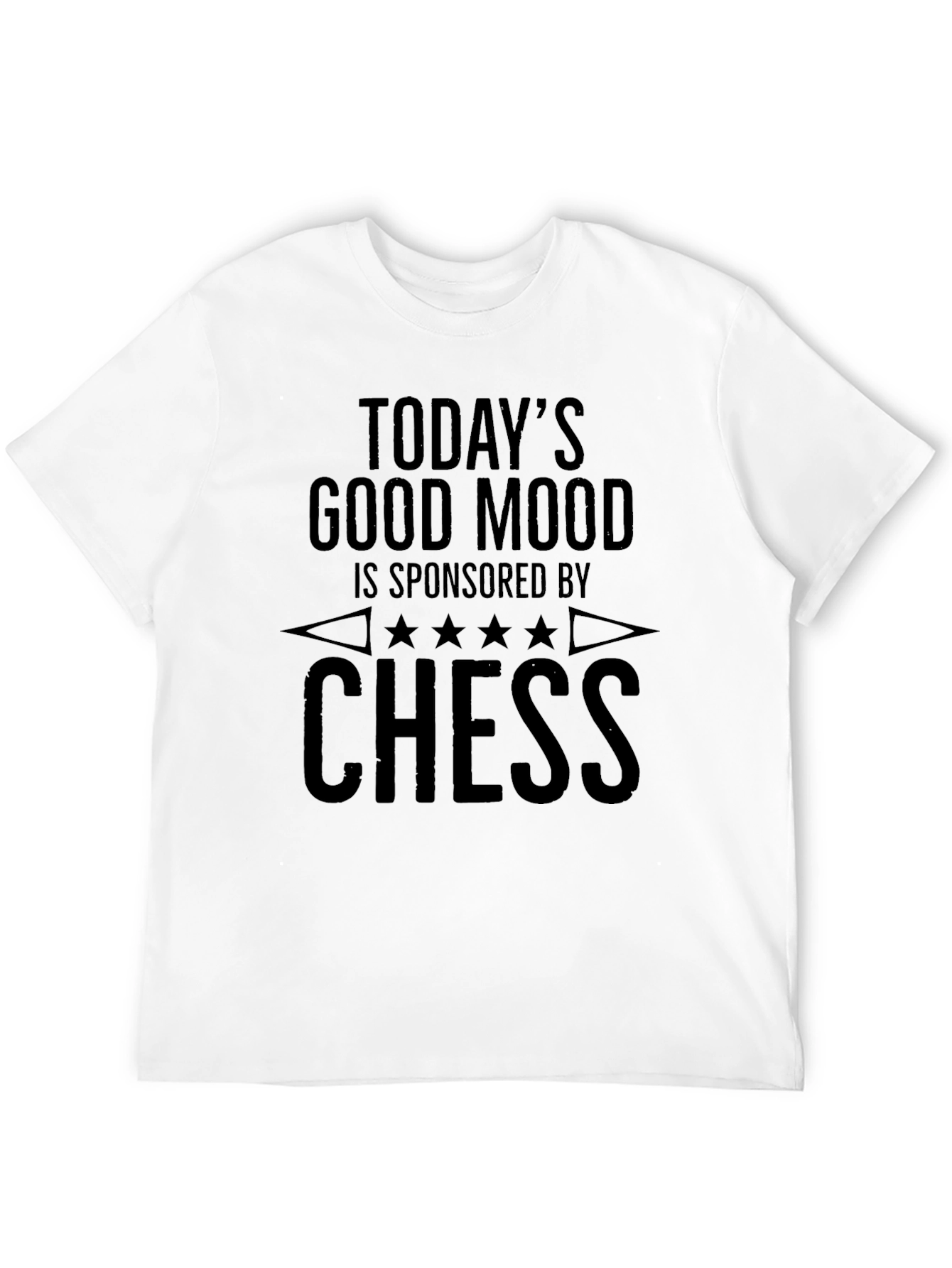Luce esta camiseta negra con un diseño que declara tu amor por el ajedrez. La frase "TODAY'S GOOD MOOD IS SPONSORED BY CHESS" (Hoy mi buen humor es patrocinado por el ajedrez) destaca en la parte delantera, convirtiéndola en una prenda ideal para los amantes de este juego. El diseño presenta estrellas y flechas que enmarcan la palabra "CHESS", añadiendo un toque llamativo. Perfecta para usar en torneos, reuniones de ajedrez o simplemente para expresar tu pasión en el día a día. Fabricada con materiales cómodos para garantizar tu confort mientras juegas o te relajas. ¡Una declaración de estilo para los aficionados al ajedrez!