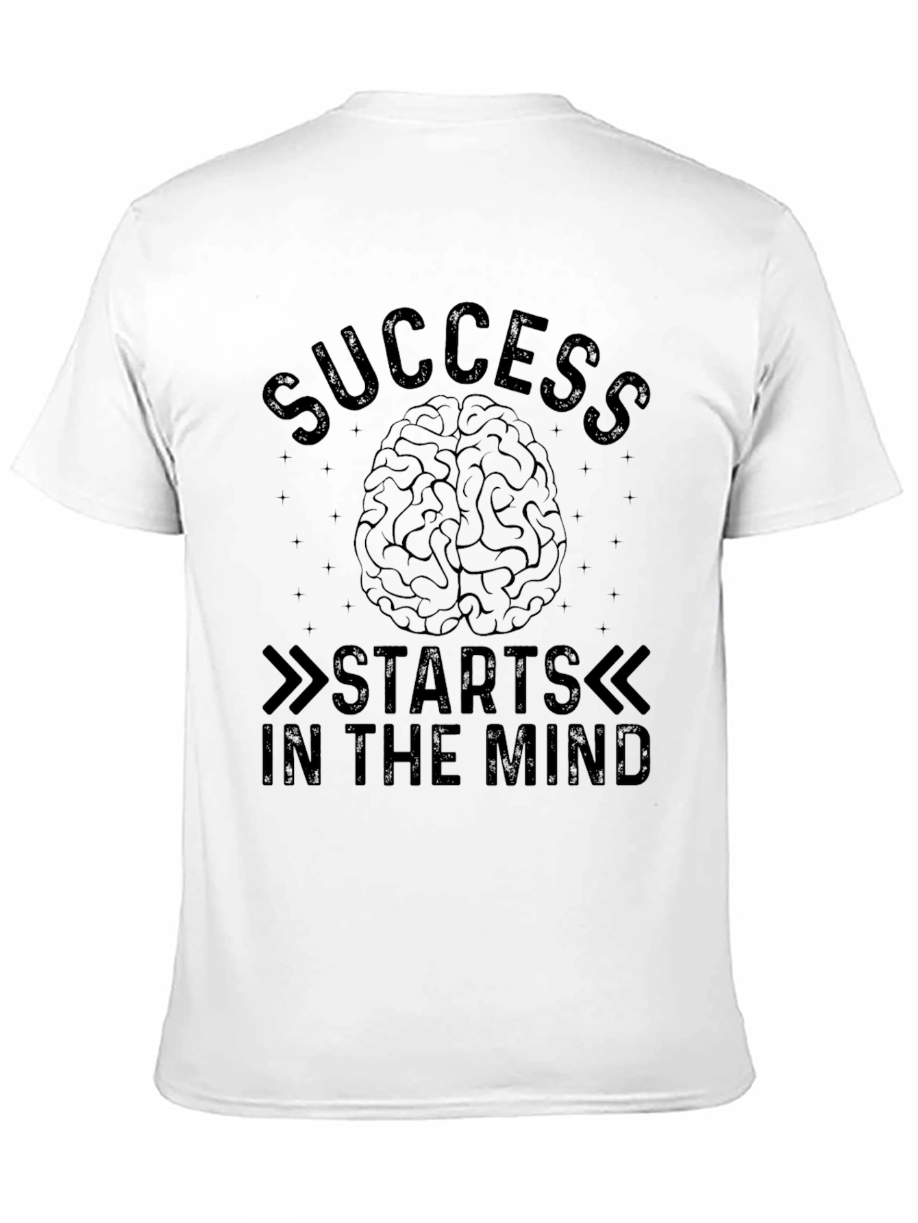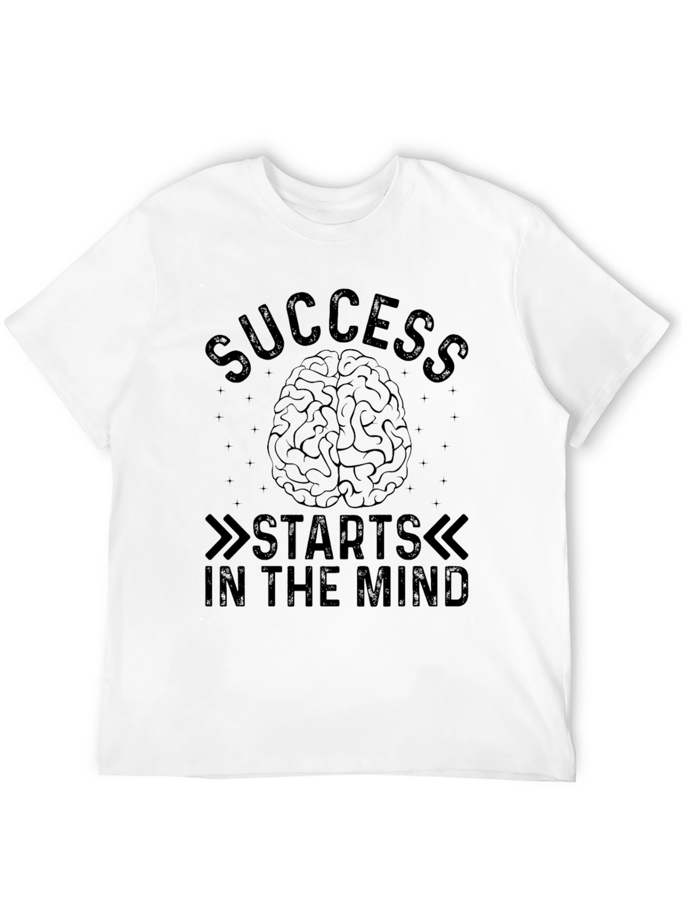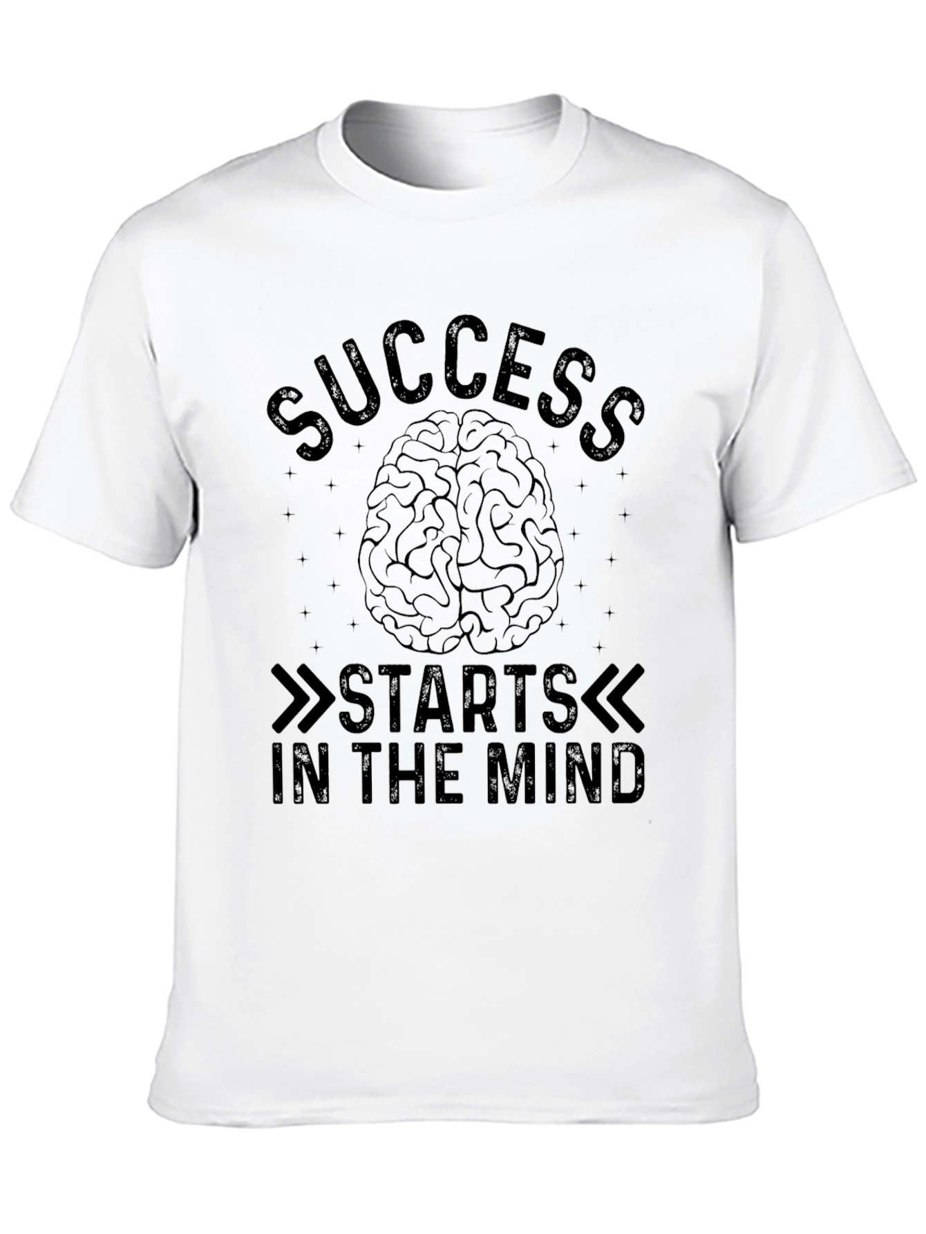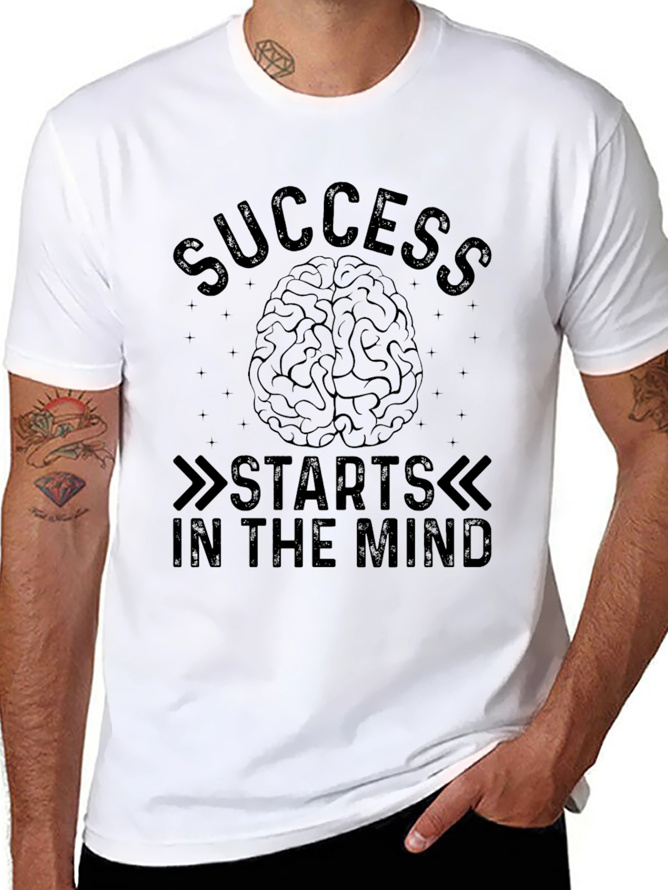 Luce esta camiseta negra con un diseño que inspira. Fabricada en un tejido suave y cómodo, esta camiseta presenta un estampado de un cerebro estilizado y la frase motivadora "Success Starts in the Mind". Ideal para el uso diario, ya sea para ir al gimnasio, salir con amigos o simplemente relajarte en casa. Su corte clásico se adapta a cualquier estilo, haciéndola perfecta para quienes buscan expresar su mentalidad positiva y ambición. ¡Una declaración de intenciones que te acompañará a cada paso!